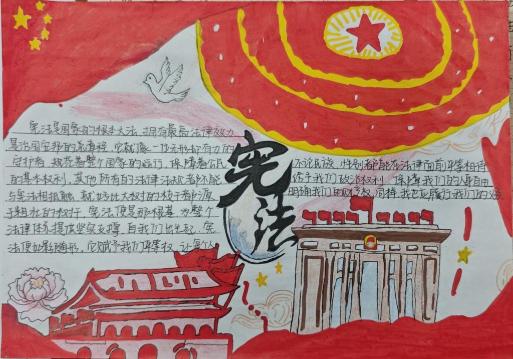 结合学院专业特色,学院鼓励员工利用新媒体技术参与宪法宣传。同时组织员工创作以宪法为主题的手抄报等作品。